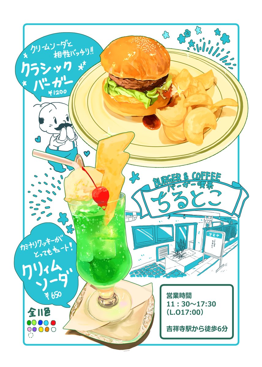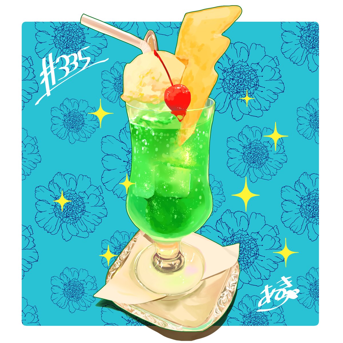 #食べ物イラスト 323枚目「うのまち珈琲店のクリームソーダ」 念願のクリームソーダ味わってきました ノスタルジックな雰囲気が堪りません #イラスト好きと繋がりたい #絵描きさんと繋がりたい