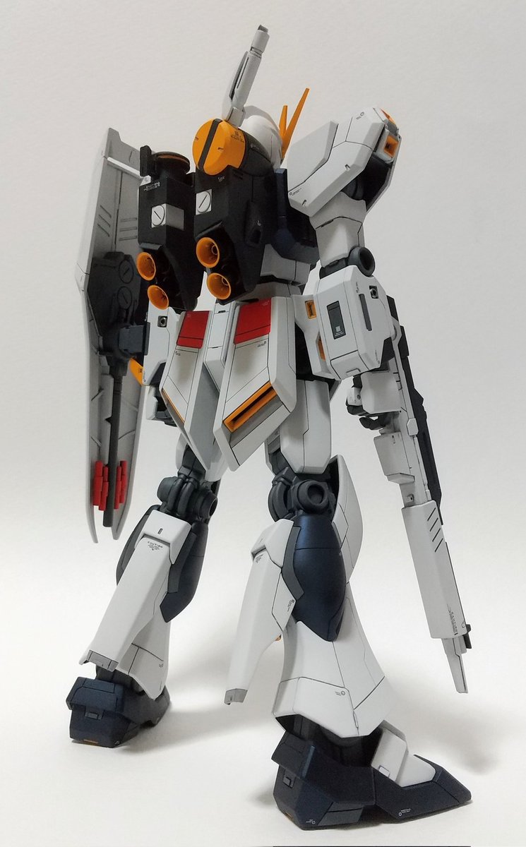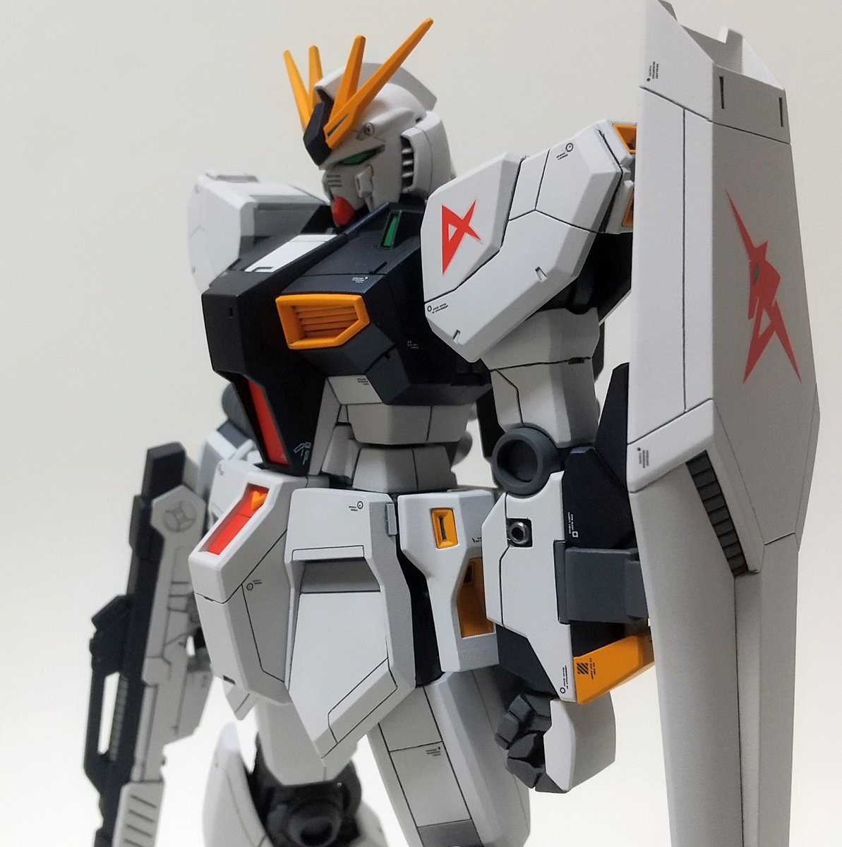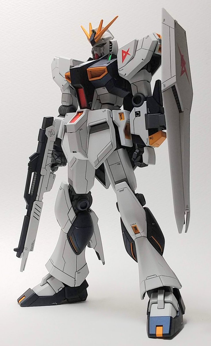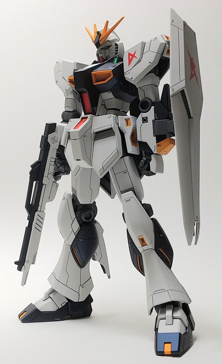 #俺達のEGガンダム 間に合って良かった😅 EG νガンダム完成です♪ プロポーションは素晴らしいのでほとんどイジらず、間延びしてると感じた面にスジ彫り等でディテールを追加しました。 胸等の黒部分はカイアノーツのプリズムブルーブラックを使用しました。 #ガンプラ