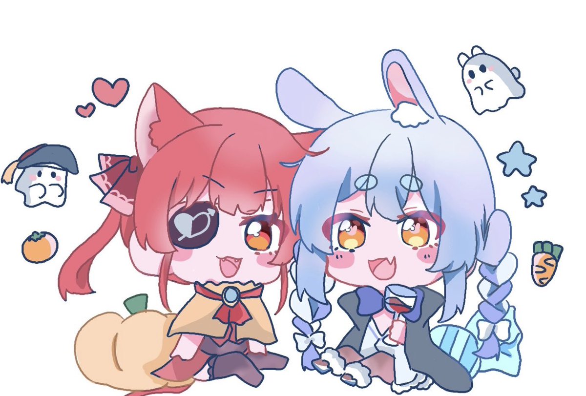 ハッピーハロウィン🎃サブ🐰🏴☠️ ヴァンパイアぺこちゃんと狼マリン船長 #ぺこらーと #マリンのお宝