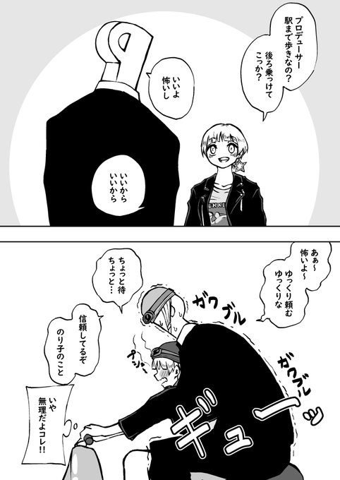 何も考えず二人乗りを提案するのり子とがたいが良く怖がりなP #福田のり子 #ミリシタ