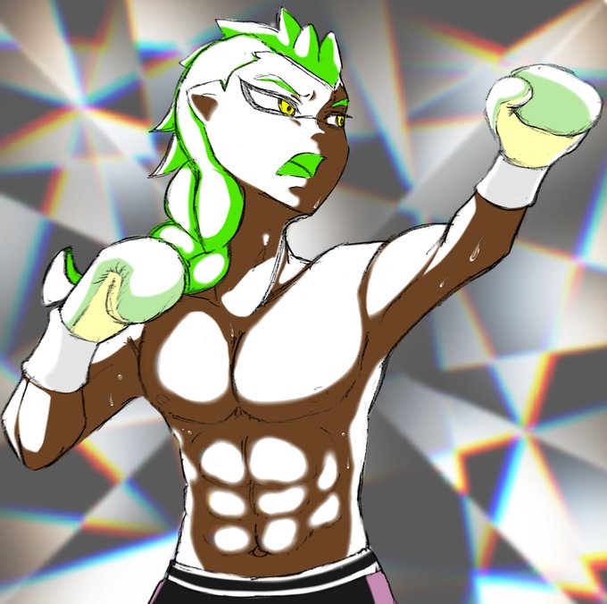 #ボクシングの日 らしいので描いてみたけど…迫力は死にました() 背景貼り付けるのやめましょうや…😐 筋肉描く練習もっとたくさんするぞー!