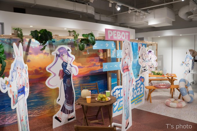 サッポロファクトリーのホロライブサマーでPEBOTに会ってきた!一眼抱えて撮ってたのはたぶん僕だけやろな…。ぺこちゃん麦わら帽子被ってるし、トワ様サングラスかけてるし、ししろんBBQ持ってるし! #しし論