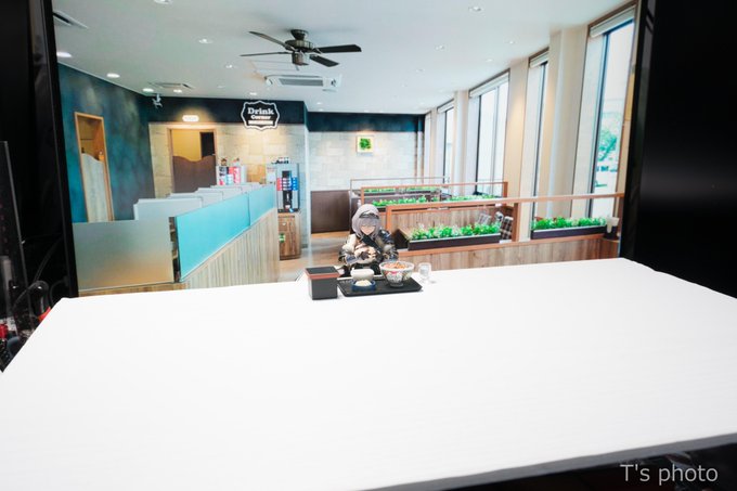 「エネルギー補給」 やっとfigma団長届きましたので一発目の写真! #ノエラート #白銀ノエル #オモ写 #figma #吉野家