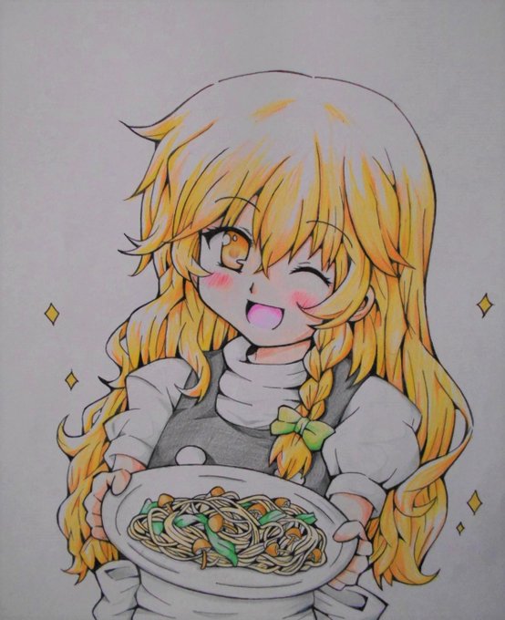 きのこパスタを作って嬉しそうにしている魔理沙✨