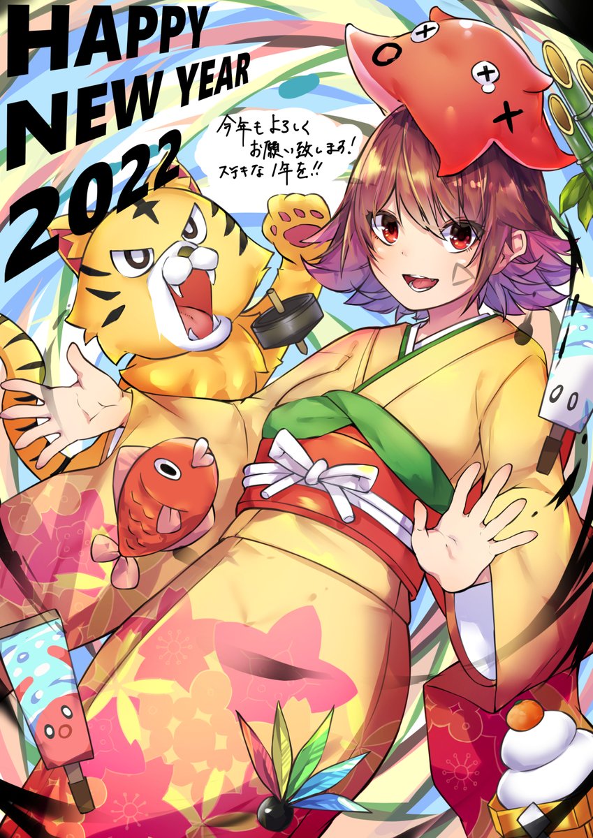 12 95 THE あけおめ 今年もよろしくね おニューの液タブでのイラスト初めてやったね~ #年賀状イラスト 22/01/01 00:38