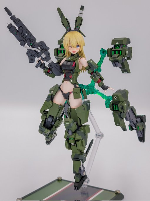 78 234 「バージニア・グリーンベレーバニースーツver.」完成! muscutoさんのバニーパーツが発表されてからどうしてもやりたかった組み合わせです! タイツの塗装はブルアカのバニーアスナが好みだったのでそれを参考にしています! #メガミデバイス #アリスギア 21/12/05 09:09