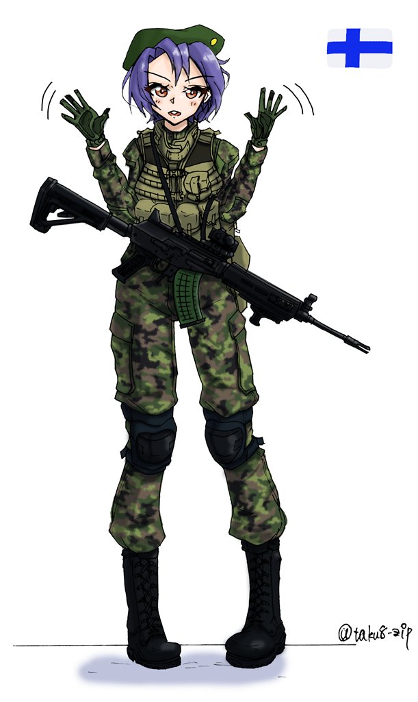 現用スオミ装備のアールニオさんの落書き。 #ミリ姫