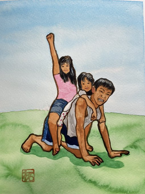 0 11 『パパ監視員』 #イラスト #水彩画 #watercolor 21/09/03 08:12
