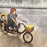 『令和育児時雨』 #水彩画 #イラスト #watercolor #お迎え #育児