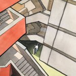 0 5 『囲われの中の自由と本当の自分』 #水彩画 #イラスト #watercolor #watercolorpainting #ビル #マンション #自由 #一人 #昼休み 20/10/24 19:39