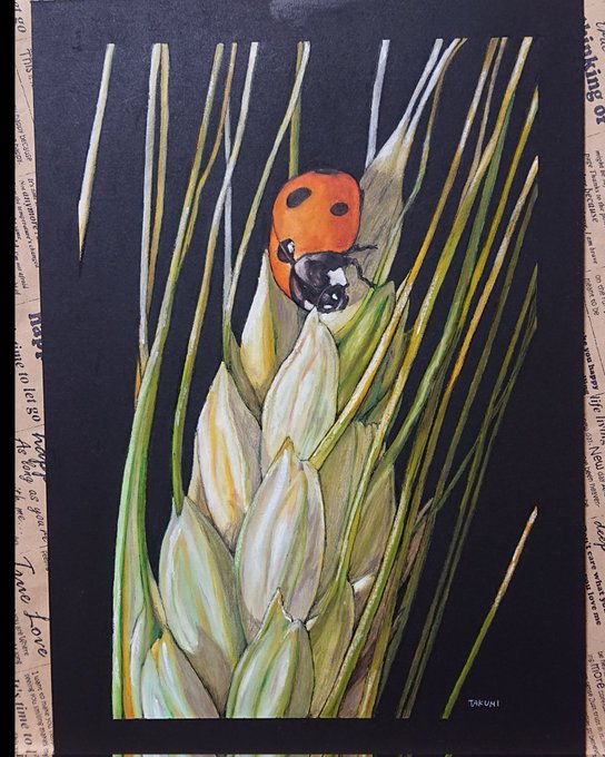 「幸せ小麦」てんとう虫を描いてみました🐞 4月20日~30日までギャラリー国立様の「鳥たち。」に出品させていただきます🎵 29日(土)クイーンズスクエア横浜のイベントに参加させていただきます🎵 #チョークアート #ギャラリー国立 #クイーンズスクエア横浜