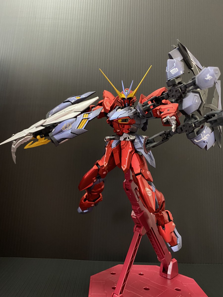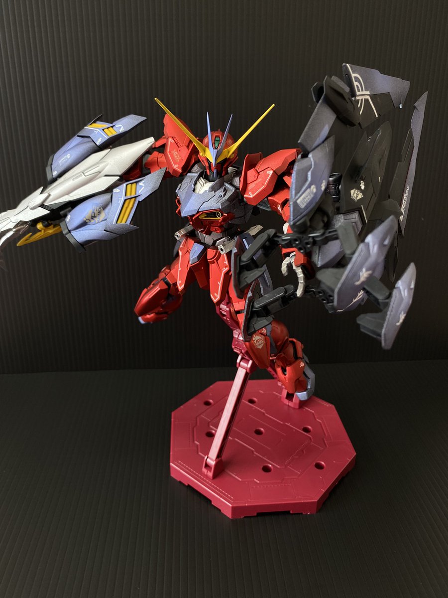 MGテスタメントやっと完成😭 サフ吹いてガンダムマーカーエアブラシで塗装して、艶消ししました! 赤の塗膜が弱くて、手によく付く😅でも満足👌 #ガンプラ好きと繋がりたい #ガンプラ