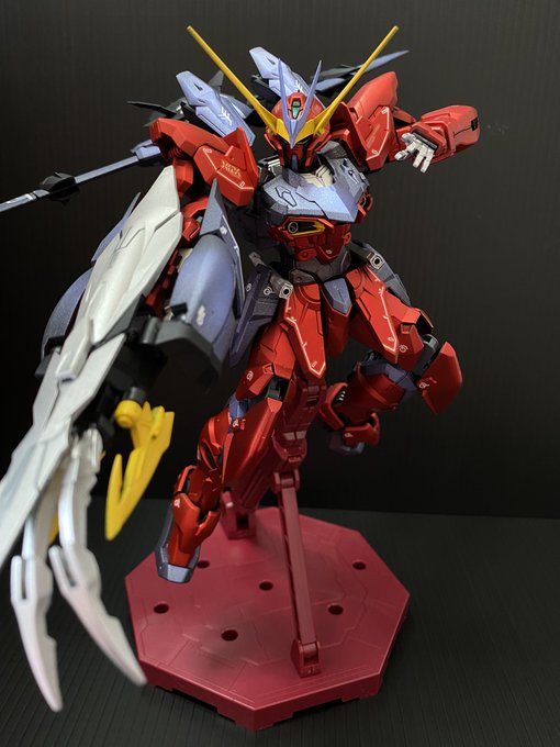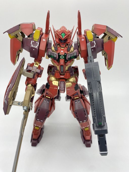 11 145 MGテスタメントやっと完成😭 サフ吹いてガンダムマーカーエアブラシで塗装して、艶消ししました! 赤の塗膜が弱くて、手によく付く😅でも満足👌 #ガンプラ好きと繋がりたい #ガンプラ 21/06/18 12:08