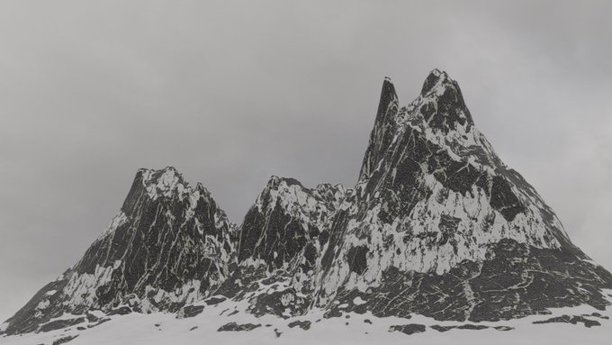 blender100日チャレンジ 51日目 雪山 ←1週間前 現在→ 1週間ひたすら格闘したらここまできました、まだまだ納得できない部分多いのでもうちょい修正していこう。 #blender #b3d #blender初心者 #Blender3d #3DCG #100日チャレンジ