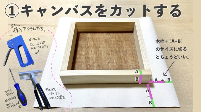 絵を描くときによく使う「キャンバス」を自分で張る方法をまとめました。キャンバスは買うこともできますが、自分で張れるようになると好きな画布&貼り具合で自分好みにカスタマイズできます。そして画家っぽい。(たくさん作ればコスパもいいです。)制作の参考にしていただけたら嬉しいです twitter.com/i/web/status/1…