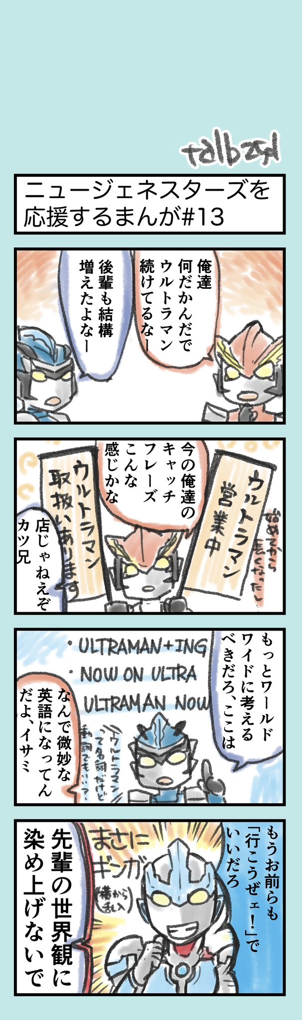 #特撮版深夜の真剣お絵描き60分一本勝負S ⑤「今週の放映作品」今週のウルトラマンニュージェネスターズの幻覚を出力しました。 ウルトラマンはじめました!って、何度聞いてもいいキャッチフレーズですね。