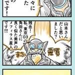#特撮版深夜の真剣お絵描き60分一本勝負S ⑤「今週の放映作品」ニュージェネスターズのゼットさんから話を聞く、ヒカリさんの幻覚を出力しました。 過労やストレス過多の条件が揃いがちなヒーロー、ヒカリさんを応援しています。