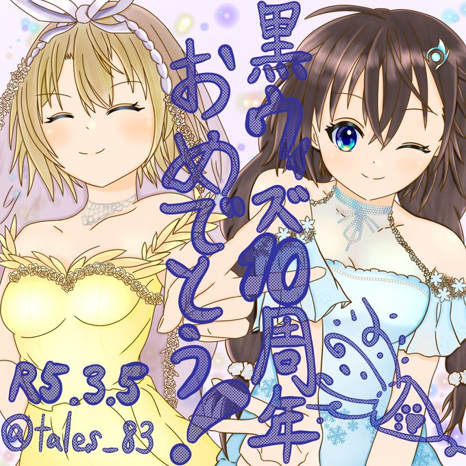 10周年・・・ すごいですよね 1/2成人式みたいなもんですよ(*'ω'*) そんな時間に立ち会えたことに感謝です! 黒ウィズ10周年!本当におめでとうございます!!🎉🎊🎉 黒ウィズに出会えて、リレイちゃんルミちゃんに出会えて本当によかったです! #黒ウィズ10周年 #祝黒ウィズ10周年ファンアート