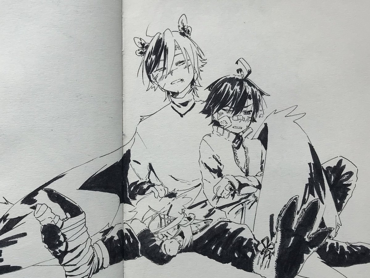 Rean with my OC-seagull (his name is U744) Because of my job I can’t drawing everyday... #inktober2022 #TrailsOfColdSteel #ReanSchwarzer #originalcharacter