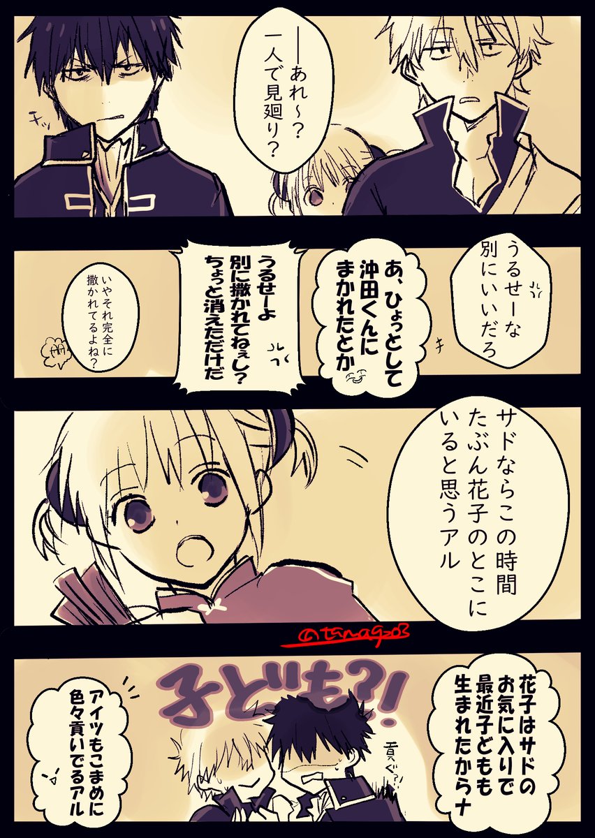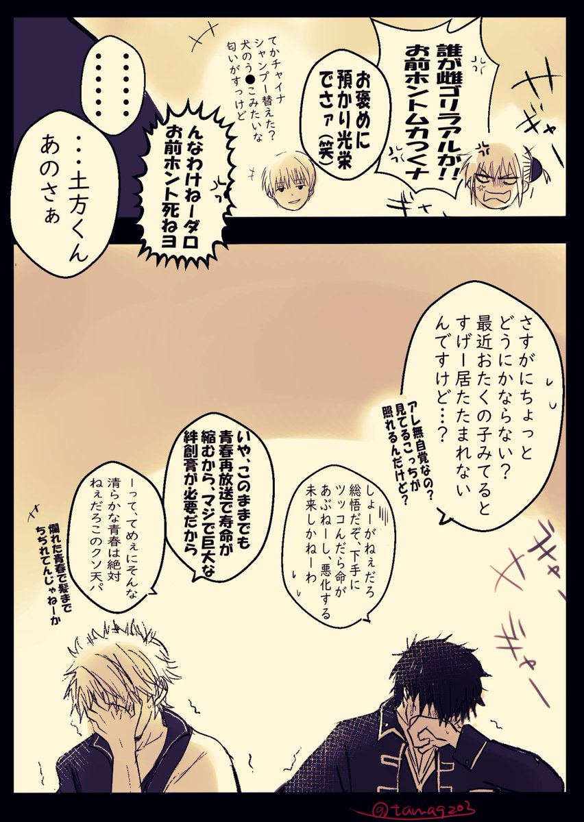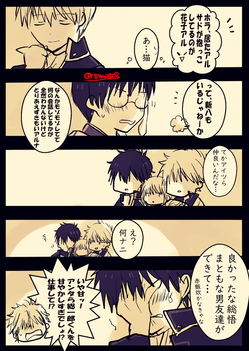 👓️「いやぁ、僕の日がきましたね!」 🍓🐰「……」 👓️「みてください、公式PVにたくさんの祝絵にアイコン!TLに僕があふれてますよ!」 🐰「……🍒の癖におしゃれラテなんてナマイキアル!沈めるアル!」 👓️「…🍒関係ねぇえええぇ!」 #志村新八生誕祭2023 #志村新八誕生祭2023 #ちゅんずでー
