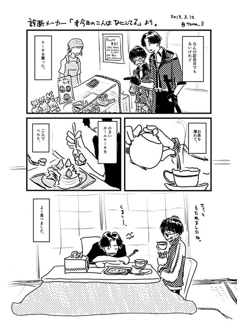 8 48 診断メーカー #今日の二人はなにしてる の結果が可愛らしかったので描きました。(こてぶぜ) 19/03/12 21:24