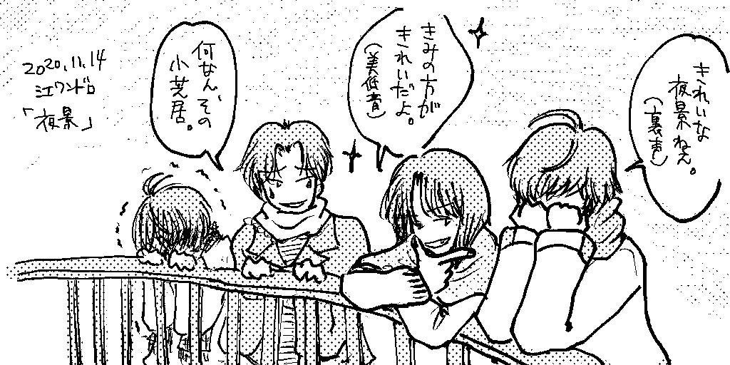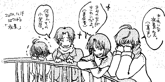 13 59 #江版深夜の真剣お絵描き60分1本勝負 「夜景」 どっかの高台的なところに来た江たちです(背景ログアウト)。 20/11/14 23:16