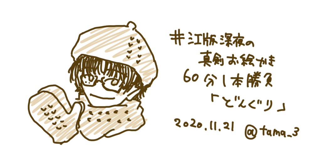 6 19 #江版深夜の真剣お絵描き60分1本勝負 お題「どんぐり」 どんぐりのようなお帽子で。 20/11/21 23:30