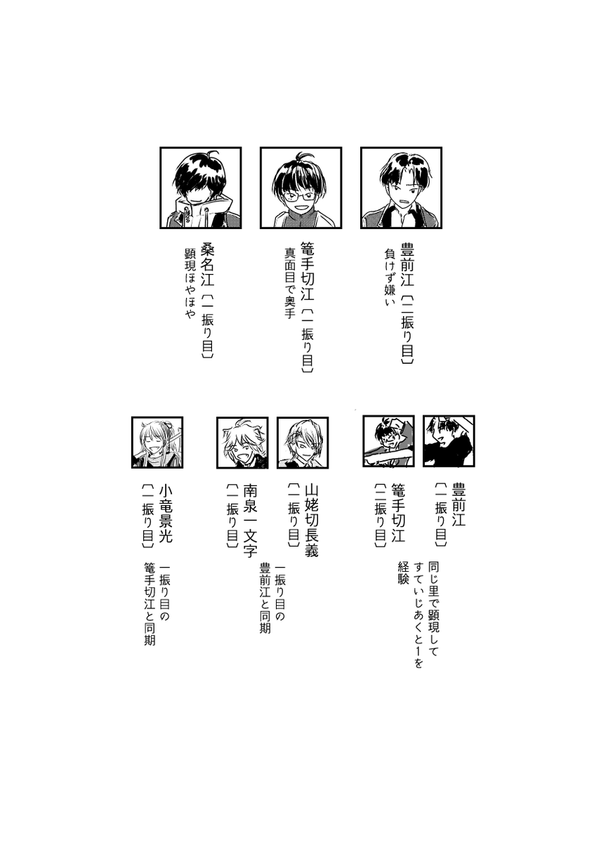 先日のアンケったーのお題絵を描きました。日向くんと山鳥毛さんとプラスαです。ご投票くださった皆様有難うございました。そして、世の中のもろもろが早くおさまりますように。