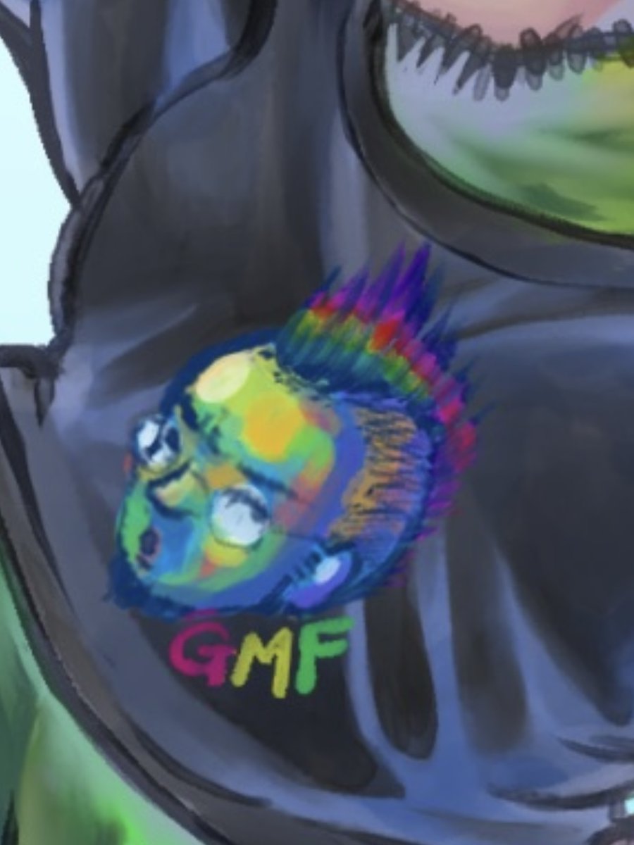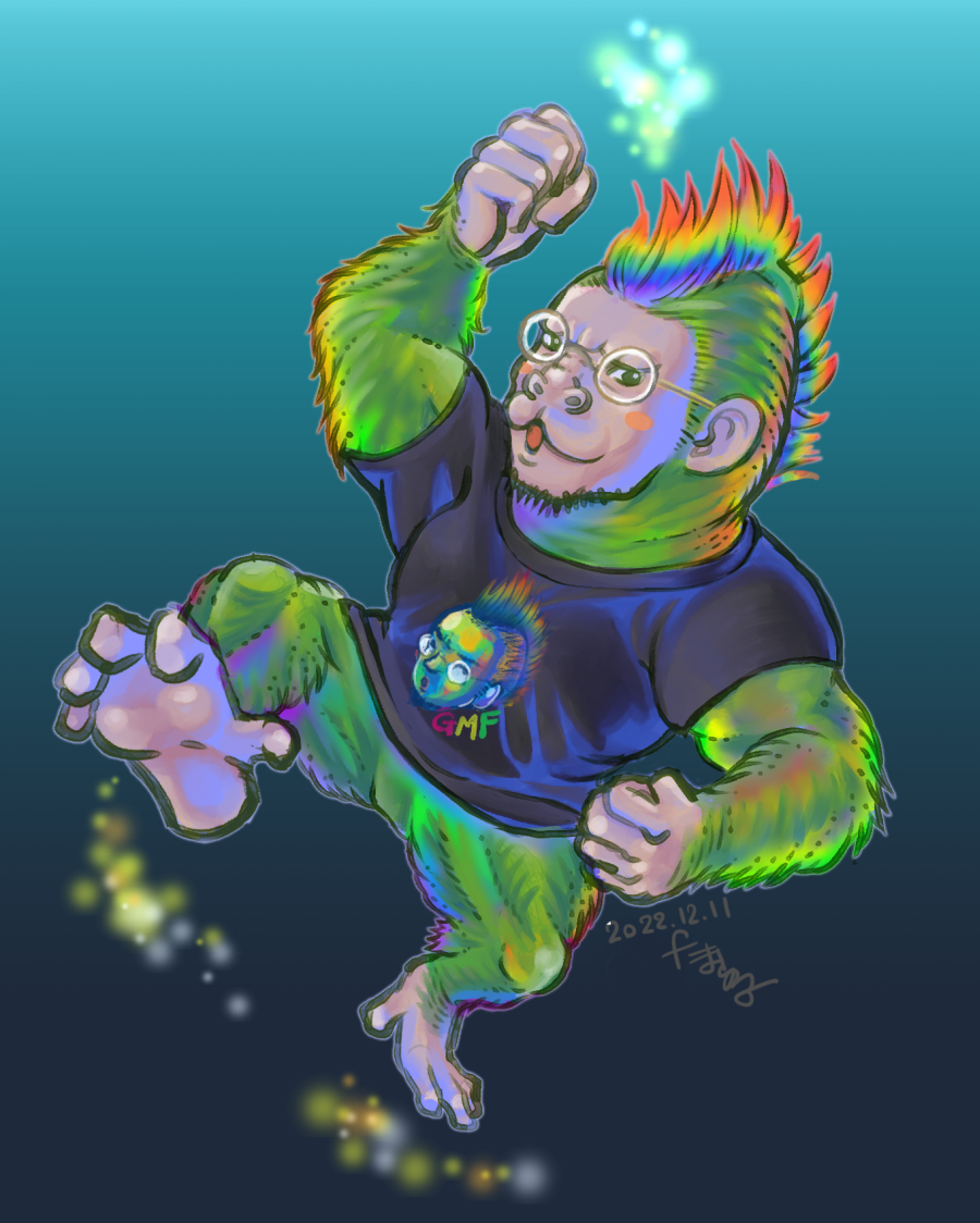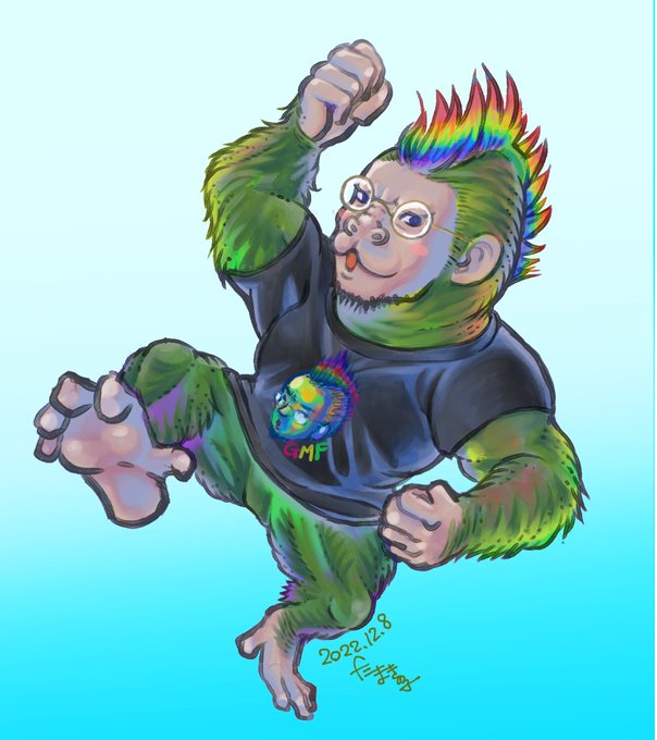 カッコいい🌈レインボーゴリラ🦍Tシャツに触発されて描いてみた「レインボーゴリラ(?)Tを着るレインボーゴリラ。 #都丸智栄 #ゴリ益 #GMF #ゴリ益モヒカンファクトリー #レインボー都丸さんもきちんとそのうち # ↑アナログでなッ!!