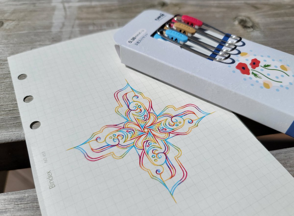 210 904 みんな……みんな聞いて……三菱鉛筆のユニボールワンすごい…… 冬のカラーセットで綺麗な模様とグラデが描けたからうはうはでお外で撮ったら……風が強くて水の中にドボン。 でも!!滲まない!! 水性顔料ゲルインキってすごーい…… (喜んでいいのか悲しんでいいのか) 綺麗に乾くといいな…… 22/03/14 13:23