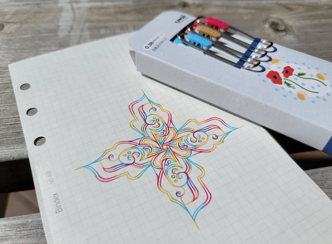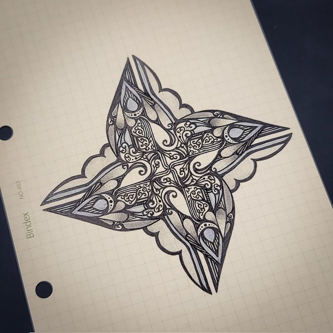 6 105 もはや暗器に見えてくるドリログさん0.2mmでトレペ1mm方眼に描きました。 光に透かすとこんな感じ。 インクはデルタさんのLucifer!! #ドリログ #DRILLOG 22/12/18 15:33