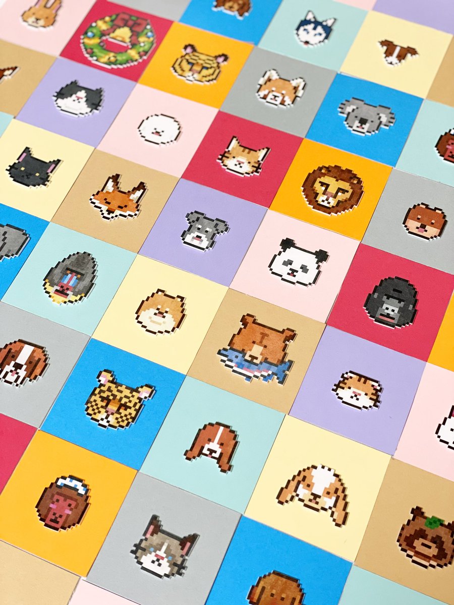 #デザフェスお品書き パート① ◎ミニハンカチ 5種類 動物柄ときつね柄、ワニ柄がありますー🦊 #pixelart #ドット絵 #デザフェス56 #デザフェス #イラスト #illustration #イラスト好きな人と繋がりたい #デザフェス宣伝2022秋