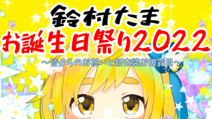 🌟鈴村たまお誕生日祭り2022🌟 4月2日(土)20:00~youtubeにて配信予定!待機所作成しました✨✨ 新衣装お披露目もあるよ~!!!ぜひ遊びに来てね(*'ω'*)お祝いもお待ちしてます!!!!! 📺待機所📺 youtu.be/SA8flG2oJM8 🖊お祝い投稿フォーム🖊 docs.google.com/forms/d/e/1FAI… twitter.com/tama_suzumura/…