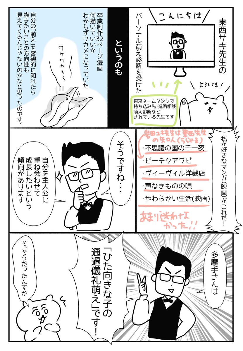 東西サキ@touzai69 先生のパーソナル萌え診断受けました。 色んな人のレポ読んだけど、萌えがみんな違ってほんと面白い✨ #パーソナル萌え診断 #コルクラボマンガ専科