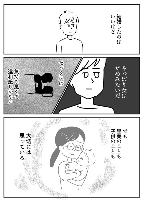 32 448 地味な女性が結婚した相手がゲイだった話・その4 ~夫側の気持ち~ (全8回) 次回水曜日更新です。 #週刊マンガ専科 #コルクラボマンガ専科 22/08/17 19:57
