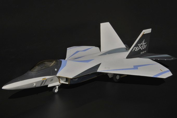 以前デザインした 『F-22 RAPTOR "白上フブキ専用機"』を プラモデルで作ってみました。 #絵フブキ (絵じゃなくてゴメンナサイ) 使用キット:TAMIYA 1/72 F-22 RAPTOR ↓リプに上下面 twitter.com/tamacat_pain…