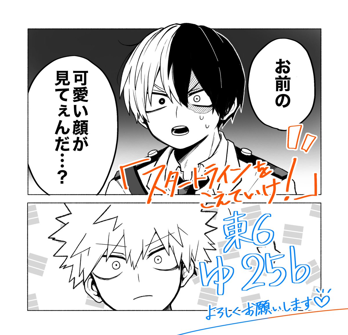 5/3 轟く爆音ラプソディ3の新刊サンプルです! 💙東6 ゆ 25b / ヒヨっ子 🧡『スタートラインをこえていけ!』 B5/34P/全年齢/¥500 長めのサンプルはpixivにて!初参戦ですよろしくお願いします‼️✊ pixiv.net/artworks/97987…