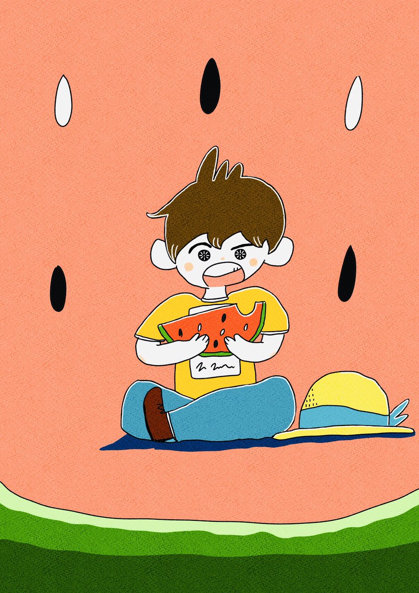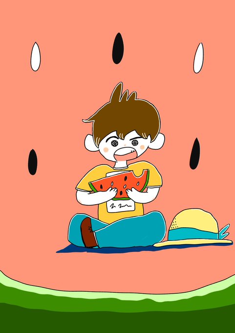 色調補正とテクスチャーかけたら良くなった!デジタル分かってきたぞ〜!🤔 #イラスト #デジタルイラスト #イラストレーター #絵本作家 #すいか #夏 #絵描きさんと繋がりたい #イラスト描きさんと繋がりたい