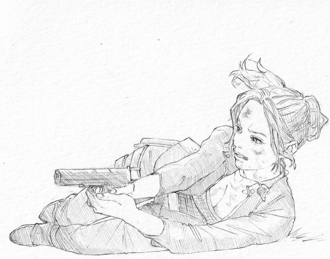 20 92 Claire Redfield クレアさん初描き。ガンアクションのポーズ集見ながら描いた。人間、むず。 22/03/11 00:14