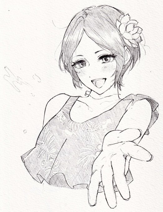 髪飾りと服の模様難しすぎて描けなかった宮本さん