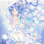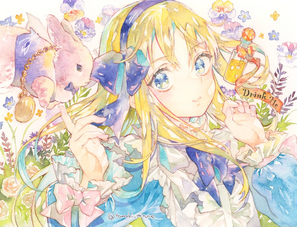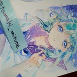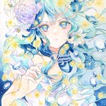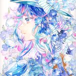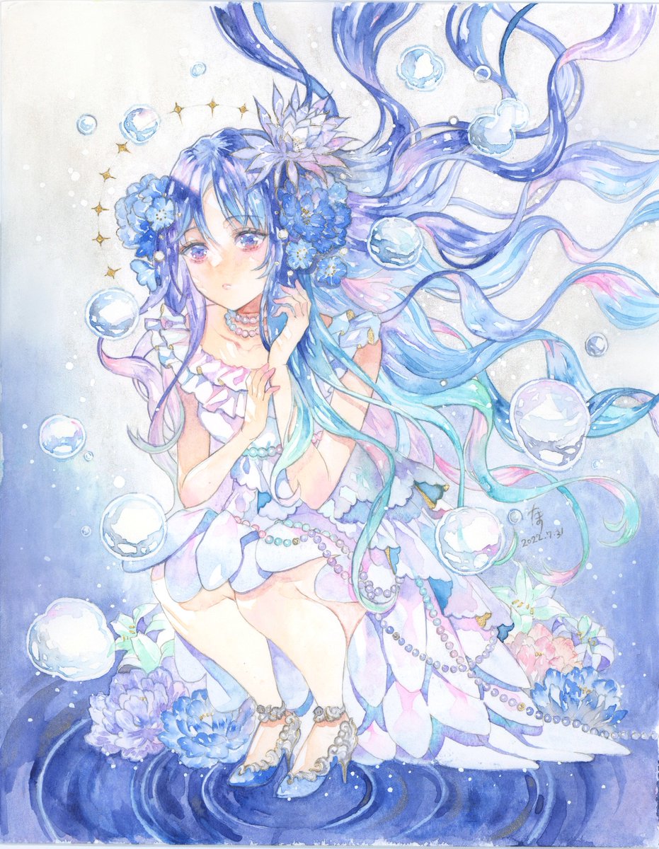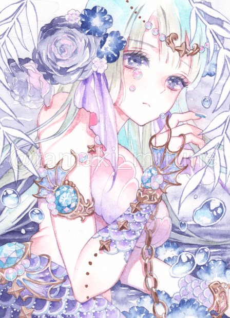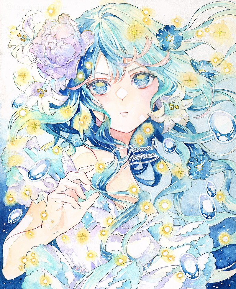 「ブルーデイジー×Bubble」 八角形の可愛い額に合わせて青でまとめた少女を描きました gallery-glad.amebaownd.com #ちいさなタカラモノ展2 #透明水彩 #watercolor