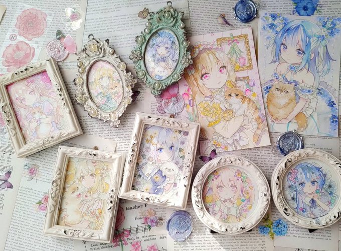 ちいさなタカラモノ展に送り出す原画がすべて完成しました🌸 「春の花と少女」をテーマに描いた原画をお気に入りの小さな額にセットしました ネコチャンとイッヌもいっぱいいます Gallery glad.さんで2023年2月11日(土)~ #ちいさなタカラモノ展2 #透明水彩 #watercolor