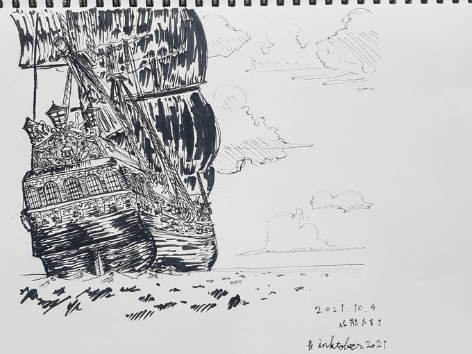 5 14 Black Paearl 一日遅れちゃいましたが、テーマ「船」ということで。 #イラスト #ペン画 #inktober2021 #Inktober #ペン画を流してペン画民を増やそう 21/10/04 05:00