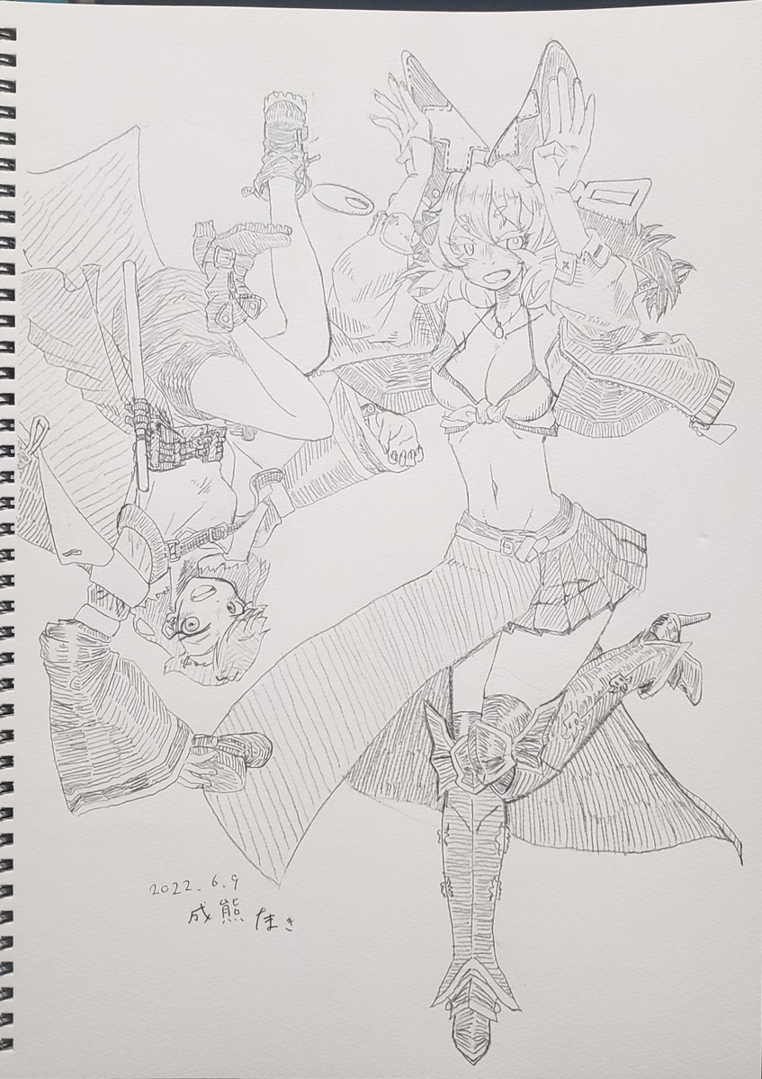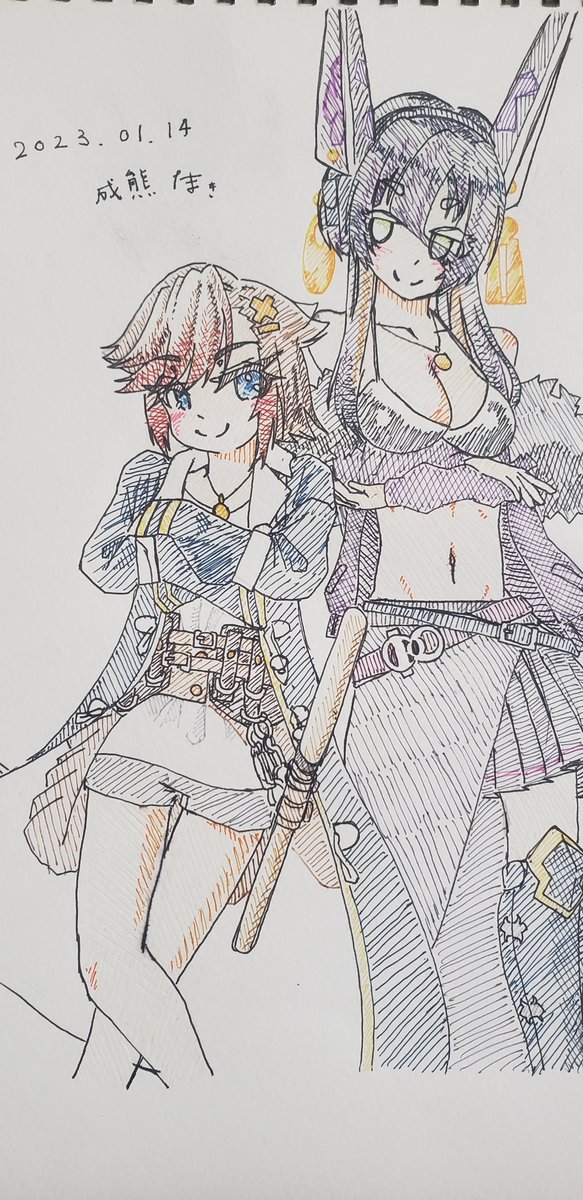 1 7 オリジナル2枚とマリン船長、チリちゃん。 大分描けた気がするが、色塗りなんとかせなな~ #今月描いた絵を晒そう 22/11/29 21:26