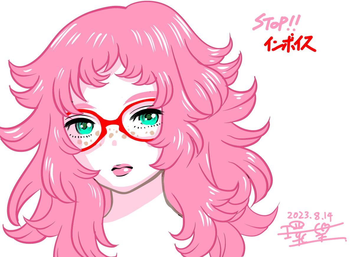 今日はホントにらくがき。 SF大会の「おぼろげ絵画教室」で描いた、うろおぼえ某アイドル😅 似てないとか、そういうレベルと違う! #STOPインボイスらくがきデモ #私たち漫画家はインボイス増税に反対します