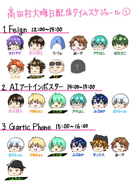 98 300 高田村大晦日配信のスケジュールまとめ 間違いがあってもご容赦くださいませ ※名前の黒ラインは見やすくするためだけなので特段意味はないです #高田村 #高田大好きちゅちゅアート 22/12/29 16:59