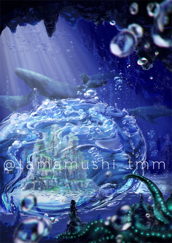 #今までで作画カロリーMAXの作品上げようぜ これですかね(・ω・)3D使いの人に3Dと間違われるなどしましたw テクスチャでもなくほぼ全部丸ブラシで描いてた あ、周りの点描とかノイズやざらついてるとこは機能だったり点描ブラシだったりしますけどね いつかまたがっつり水描きたいなぁ