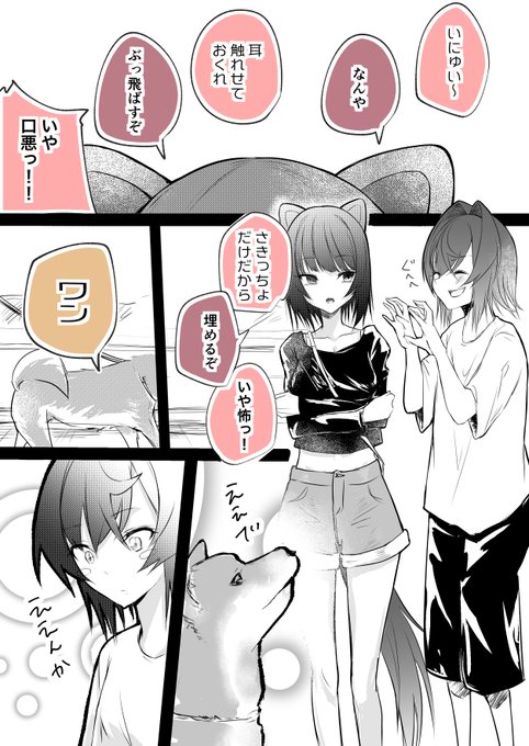 【過去絵】 「耳触らせて」 「ぶっ飛ばすぞ」 #絵ンジュ #いぬいらすと