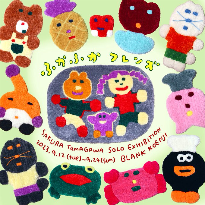 〈個展のお知らせ〉 玉川桜個展 『ふかふかフレンズ』 9/12(火)〜24(日)会期中無休 13:00-19:00 最終日17:00まで BLANK @blank_koenji blank-koenji.com ラグを中心に、布や毛糸を使用して製作した作品で構成した展示をやります。ぜひ遊びにいらしてください🧶