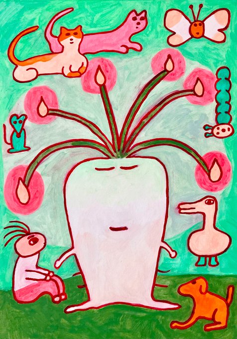 展示のお知らせ ポポタム18周年記念グループショウ 前期に参加します! 前後期合わせて70名が参加するとても豪華な展示です。 お祝いの気持ちを込めて描きました🌳 2023.4.1(土)〜4.30(日) 火水木休み *5.1(月)休み 金月 3:00pm〜8:00pm 土日祝 2:00pm〜7:00pm popotame.net